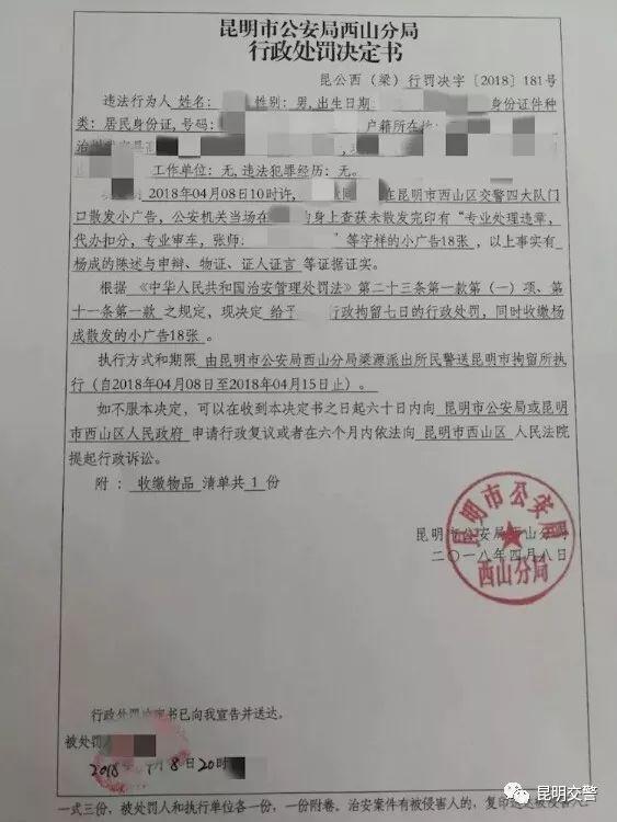 今年3月份以来,昆明市公安局交通警察支队四大队门口经常有不明身份的男子向过往群众散发印有“代扣违法记分”几个字样的卡片,此行为严重影响了大队正常的办公秩序,期间就有群众到窗口反映该情况。大队领导对此高度重视,立即组织法制中队进行先期取证工作,并先行与辖区派出所协调商讨处置措施及取证重点。