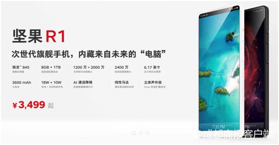 锤子R1机身采用了3D玻璃+金属中框设计,搭载高通骁龙845处理器,其正面是6.17英寸异形全面屏设计,背面采用了Logo和指纹解锁合一的设计方案,支持人脸+指纹双解锁。摄像方面采用1200万+2000万的后置双摄,前置摄像头高达2400万像素,多场景下拍照摄像都有不俗表现。