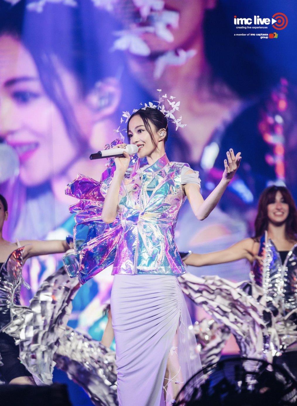 当“唯一纯白的茉莉花” 响起,Angela极具辨识度的声音将现场歌迷带回到那个美好的时光。暗黑系的《寓言》从交响乐转换至重鼓点,整首歌散发著浓郁的戏剧感震撼全场,编曲及舞美的交相辉映,Angela的戏剧方式的唱腔将这首歌重新诠释。而《欧若拉》、《隐形的翅膀》、《淋雨一直走》、《遗失的美好》等经典曲目前奏一响起瞬间掀起了全场大合唱的热潮,当晚闪烁的荧光棒灯海为魔都的夜晚点亮了属于Angela的最美星空。