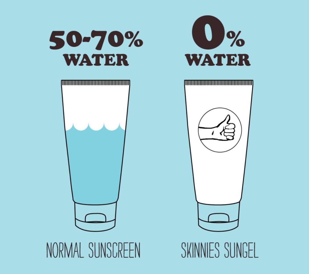 由于Skinnies的成分里不含水分,所以比一般的防晒产品有着更长的有效防护时间。