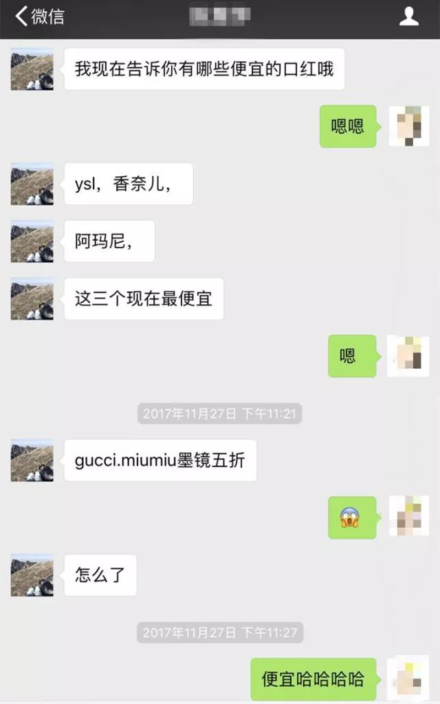 阿芳在接受采访时表示:“有时候她朋友圈会发一些英国留学的照片,我就挺相信的。她还说学姐在柜台能拿到限量的东西,一直吹嘘她家里特别特别有钱,所以想到买什么就叫她买,等她12月份回国一并带回。”