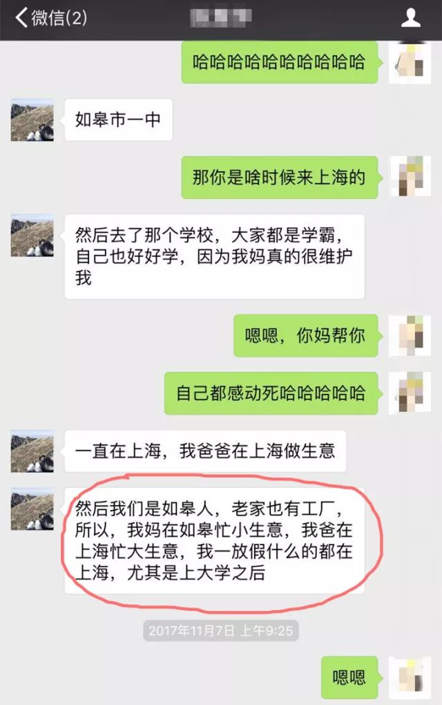 上面那个在英国留学,住着别墅,家产遍布江苏如皋跟上海的“白富美”,就是这位↓