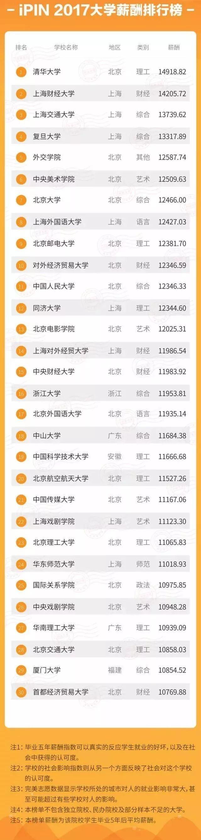 《2017年iPIN完美志愿中国大学生毕业薪酬排行》