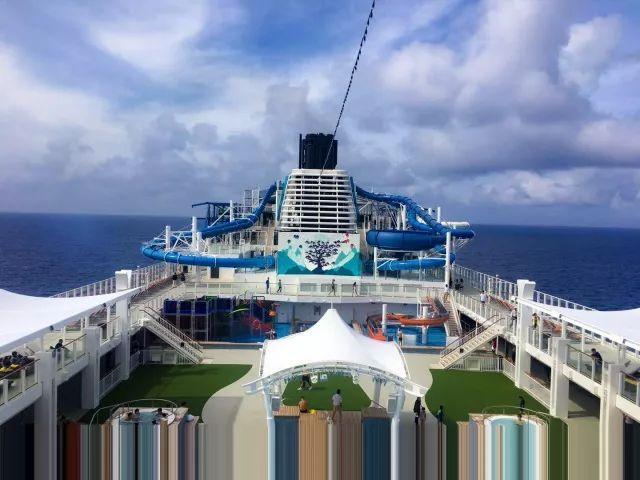比如之前小天去的星梦邮轮【世界梦号】,躺在巨大的16层日照甲板上晒太阳的场景令人记忆深刻。邮轮上有游泳池、绳索场、攀岩、迷你高尔夫、篮球场,最好玩的要数高空水上滑梯乐园了。