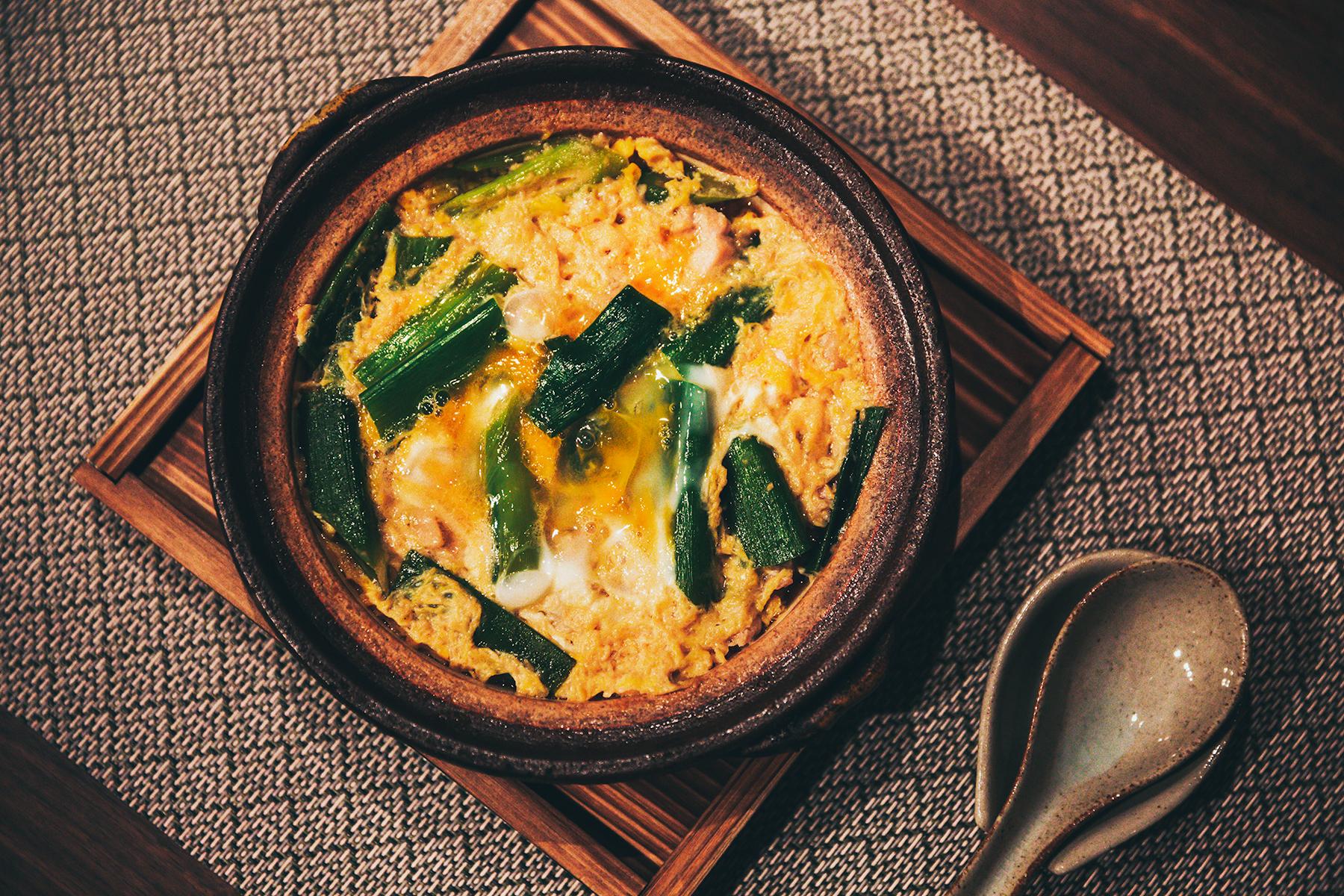 除了关东煮,店内更以关东煮的汤汁精华烹调出不少主食,当中包括「高汤炊饭」、「滑蛋鸡肉(华味鸡)」及「高汤蛋卷」。当中「高汤炊饭」最为值得一试,采用日本山形县出产的滋雅米制作,并加入关东煮高汤于砂锅当中,再配合绝妙的火候,烹调出创新独特的高汤炊饭。最后加入白萝卜丝、昆布、柴鱼、鸡皮等时令的配料后,口感十足而且每粒饭均载著「鰹节」高汤的味道。而「滑蛋鸡肉(华味鸡)」从鸡肉采用博多名产「华味鸟」,以天然饲料饲育,肉质嫩滑耐嚼且脂肪亦较少,并加入蛋汁和关东煮高汤一起烹调,最后,再加入酱油、酒糟等调味后,鸡味浓郁却不油腻!