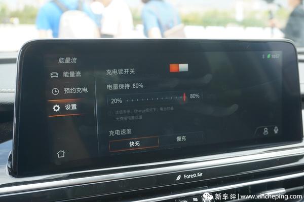 Charge这个模式是重点,它就能够让CS75 PHEV在怠速情况下,用1.5个小时把电充到80%满,充电速度比普通家庭充电桩要快很多,而且它能够设置充电的百分比,用快充还是慢充的模式来充,如果用快充模式发动机的响声会大很多。