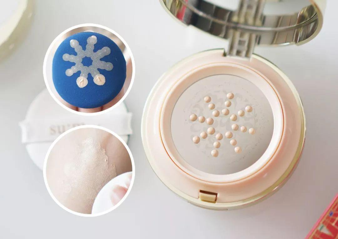 这款呼吸空气气垫粉底与呼吸空气镜垫粉底相同的是也采用了明星单品呼吸魔法精华特有的自然发酵核心成分Cytosis,能使粉底液能够外在保湿肌肤的同时让肌肤内部充盈胶原弹力,深度滋养肌肤,特别合适干性及混合肌肤使用。