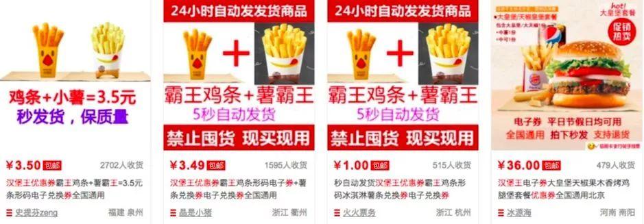 淘宝上还有皇堡+薯条+可乐套餐,价格在36-40元左右,这个我个人觉得性价比一般般!