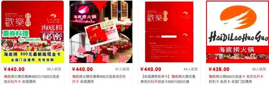 海底捞牡丹卡:现在淘宝上有海底捞的牡丹卡卖,面值500元,售价440元左右,相对于打9折,这个现金卡是能够和各种优惠券叠加的,买单的时候直接刷这个卡付款就能够了,这个卡有没有使用次数和时间限制。如果经常吃海底捞,能够入手这种牡丹卡,性价比很高。