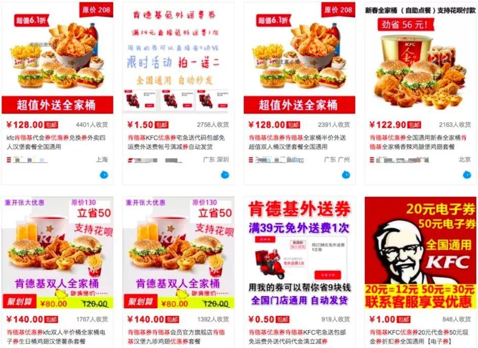 如果大家喜欢吃肯德基,能够在淘宝上搜索“肯德基优惠券”,一般有以下这些套装和优惠券能够购买: