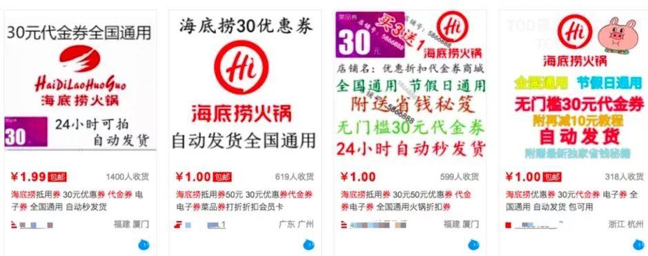 海底捞30元代金券:海底捞目前没有50元,只有30元的代金券,你在淘宝上搜索“海底捞代金券”就能看到,这个代金券没有价格限制,但是买单时间必须在下午3:00-5:30,23:00-11:00这个时间段能够使用。