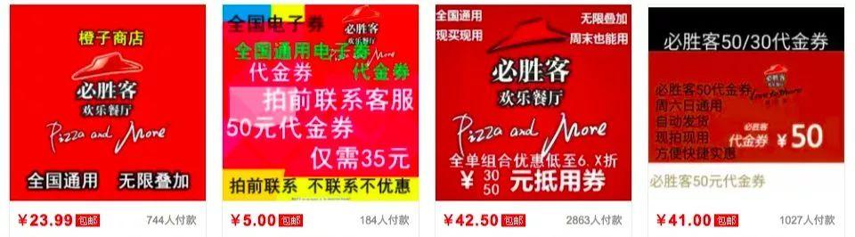 必胜客30和50元代金券:淘宝上有必胜客代金券卖,30元的代金券24元,50元的代金券35-42元不等,35元可能就需要你帮店家多拍不同店的商品。你下单告捷后,店家会给你一串条码,你给必胜客他们服务员刷一下就能够了,这个代金券没有时间限制,能够和其他优惠叠加,代金券本身也能够叠加使用。