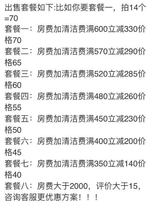 第二种如果你不是Airbnb的新用户,能够在淘宝搜索“爱彼迎优惠券”,有商家在卖带优惠券的账号,有不同的优惠价格,用他们的账号和教程下单能够享受下面的这种优惠。