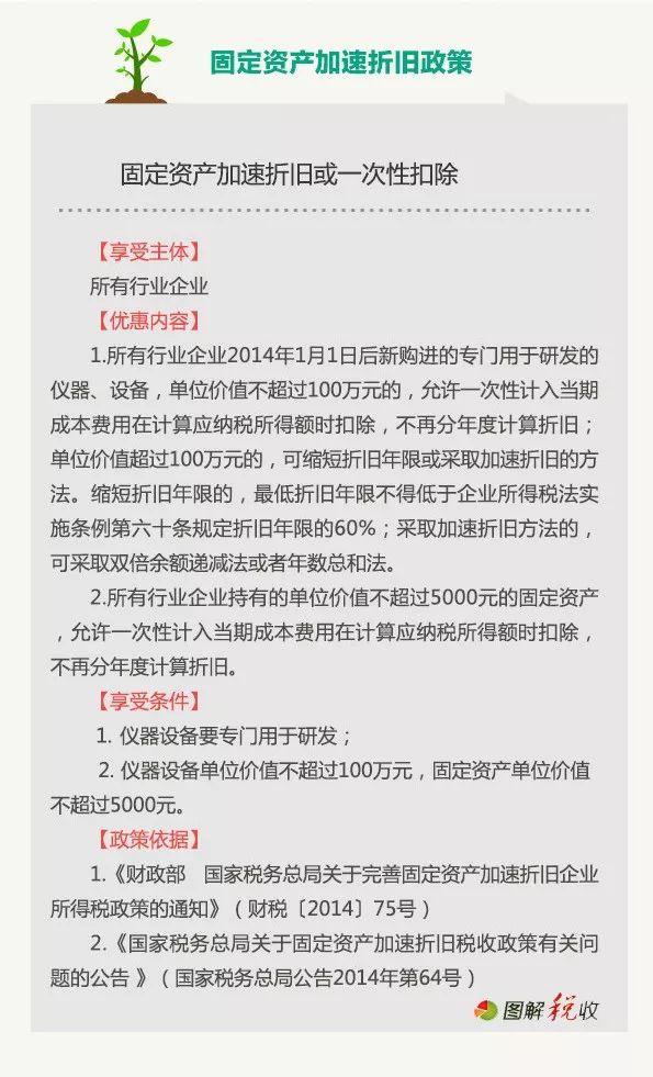 为营造良好的科技创新税收环境,促进企业快速健康成长,国家出台了一系列税收优惠政策帮助企业不断增强转型升级的动力。对研发费用实施所得税加计扣除政策。对企业固定资产实行加速折旧,尤其是生物药品制造业、软件和信息技术服务业等6个行业、4个领域重点行业的企业用于研发活动的仪器设备不超过100万元的,能够一次性税前扣除。企业购买用于科学研究、科技开发和教学的设备享受进口环节增值税、消费税免税和国内增值税退税等税收优惠。帮助企业和科研机构留住创新人才,鼓励创新人才为企业提供充分的智力保障和支持。