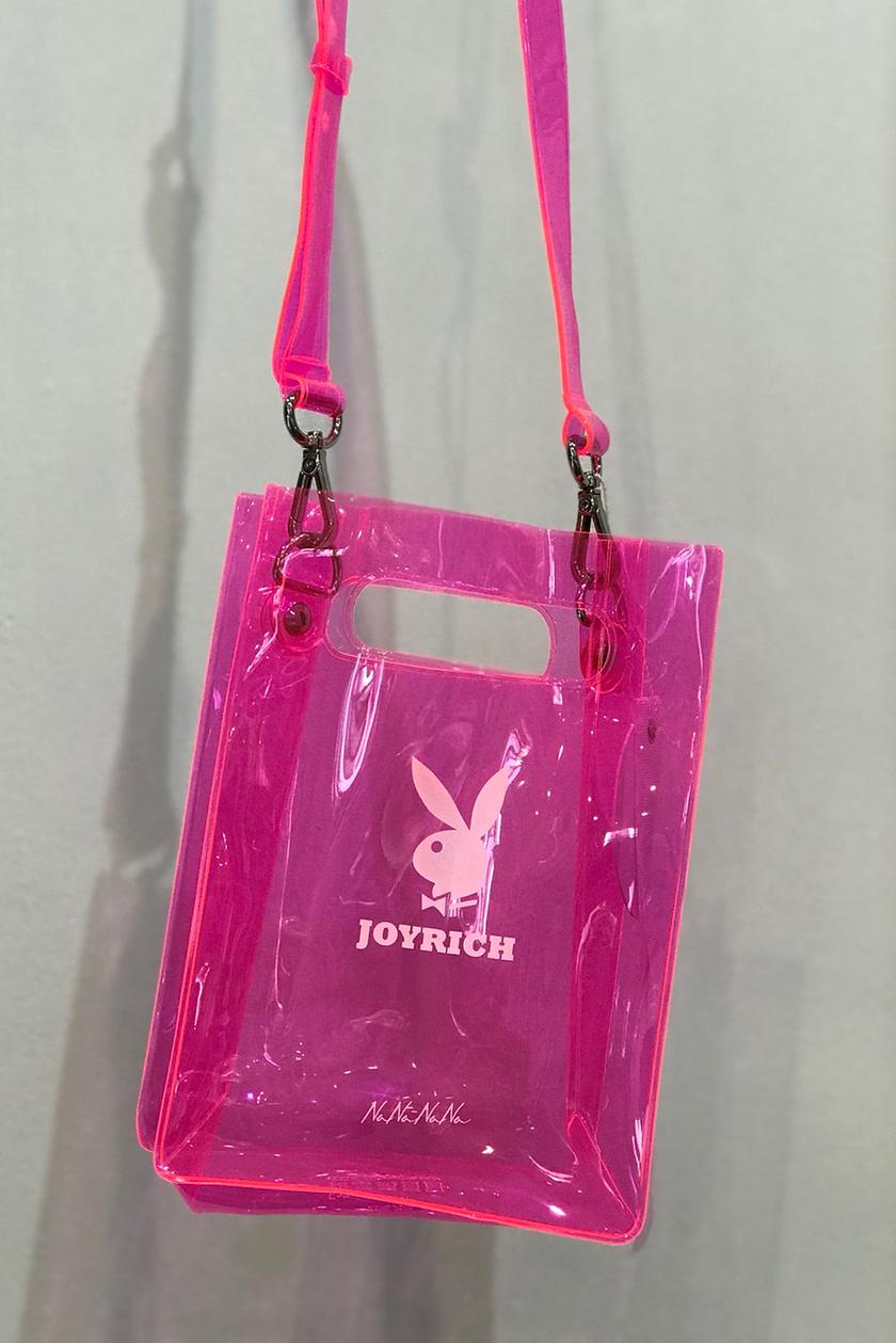 本月,JOYRICH 与 Playboy 联手日本时尚配件品牌 NaNa-NaNa,以 NaNa-NaNa 的超人气 PVC 果冻色方包为蓝本,打造了一款联名挎包。粉红的半透明颜色很合适女孩子,正面除了 NaNa-NaNa 的标志外还印上了 JOYRICH 与 Playboy 的联名 Logo。这款包包现在已经能够通过 JOYRICH 官方线上商城购买,售价 8,100 日元。