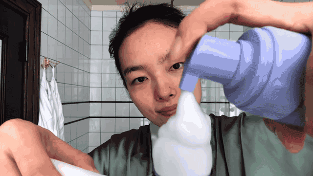 能够看出来用起泡盒打出来的泡沫真的比用手打的要厚实很多,而且绵密不容易落下,敷在脸上肯定也是绝佳的洁面体验,看来林允素颜出镜皮肤都这么好跟会洗脸绝对有很大关系。