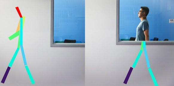 经过视频训练的人工智能能够辨别那些杂乱的无线电信号,使它能够将那些标记的身体部位与穿过墙壁的微弱无线电反射信号联系起来。